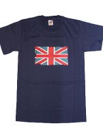 A navy blue t-shirt printed with "distressed" union jack to centre, packaged, 100% cotton, available, SMALL, M…